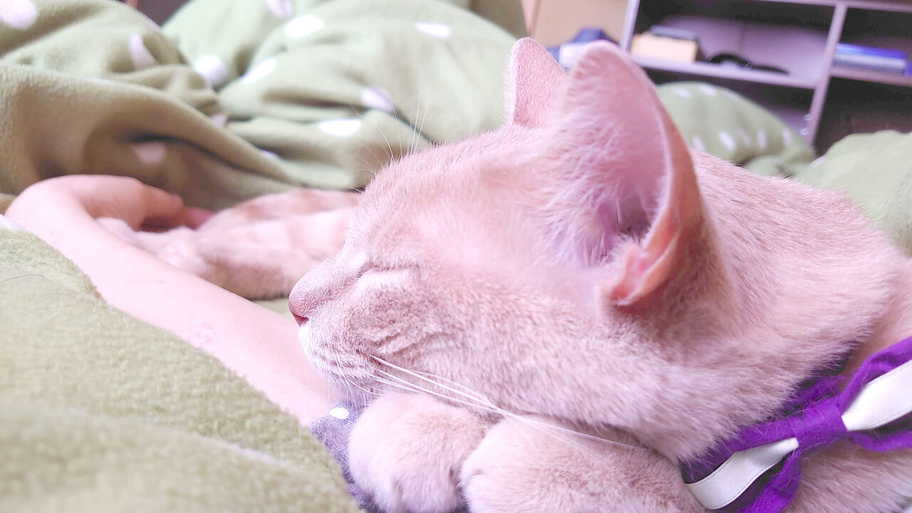 麦とまるは母ちゃんが寝るまで仕事部屋で寝ています。