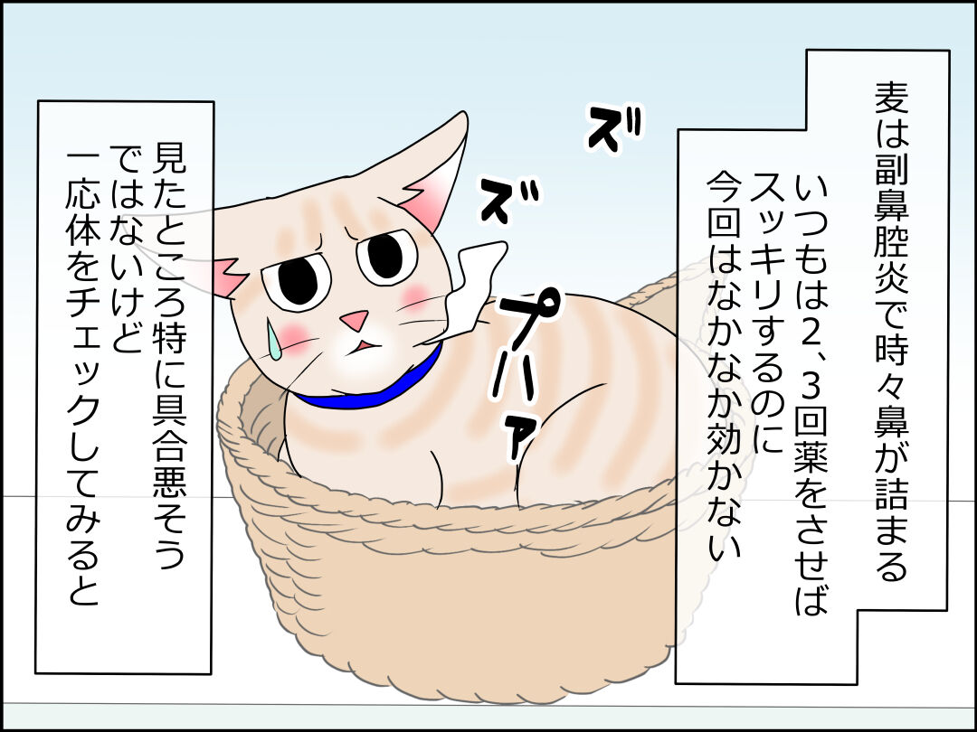 猫は鼻呼吸なので鼻が詰まると苦しそうです。