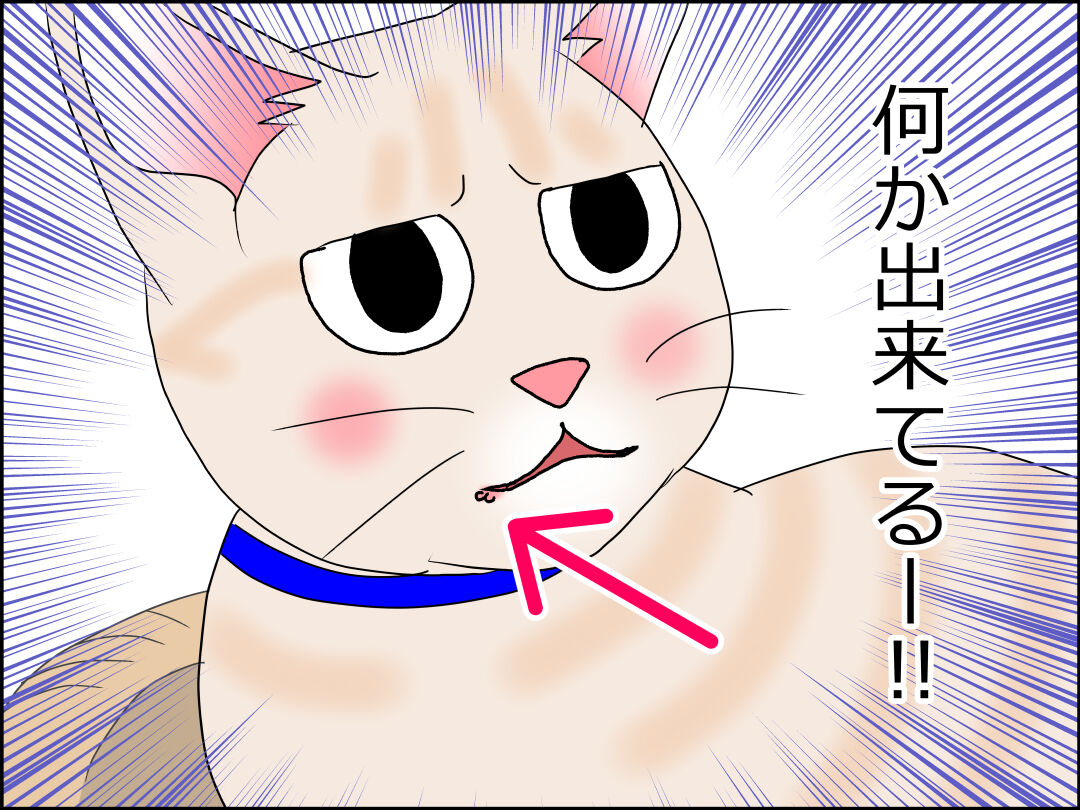 ちょっとわかりにくいけど口の端っこが赤くなっています