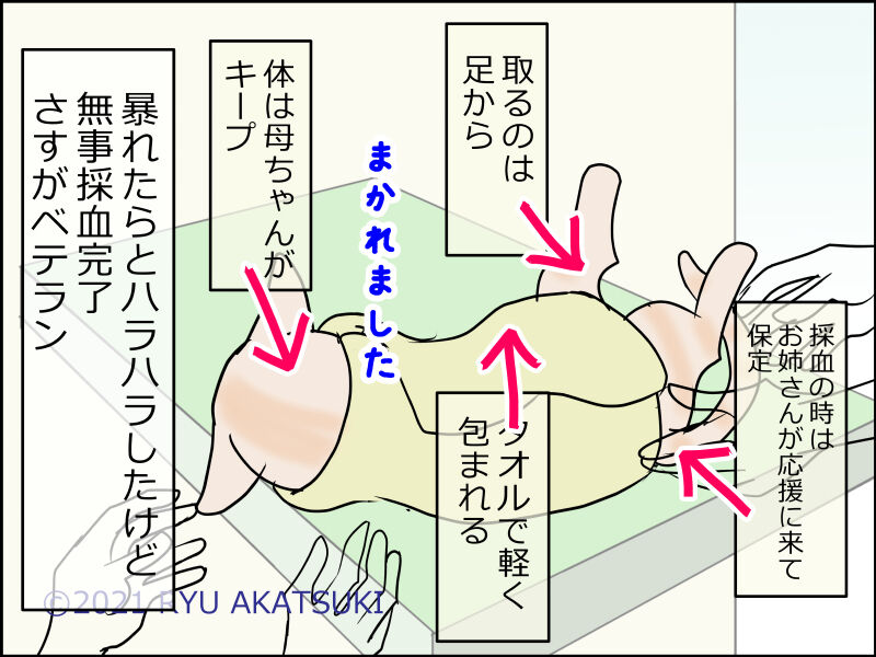 こんな小さい足からどうやって血を取るのだろうと毎回思うのですが…