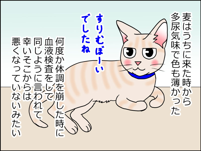 麦はうちに来た時から多尿気味で色の薄いおちっこをしてました。