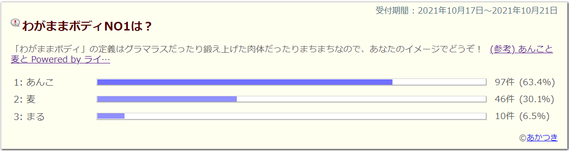 さてさて昨日の24時で「目指せNO.1わがままボディ選手権!」の投票が終わりました