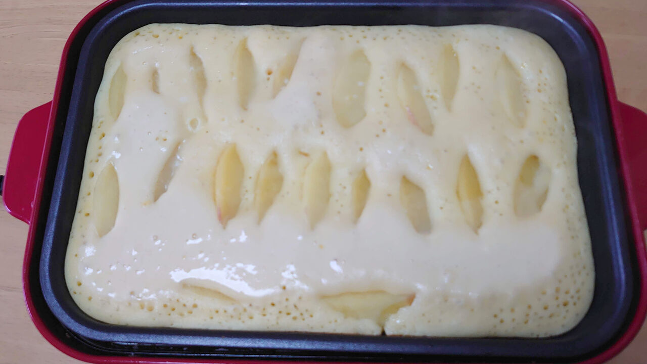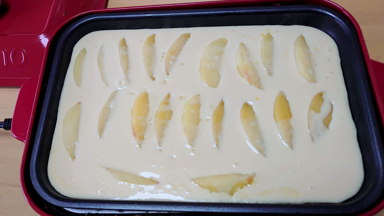 ホットプレートにバターを入れてその上にリンゴを敷き詰め…