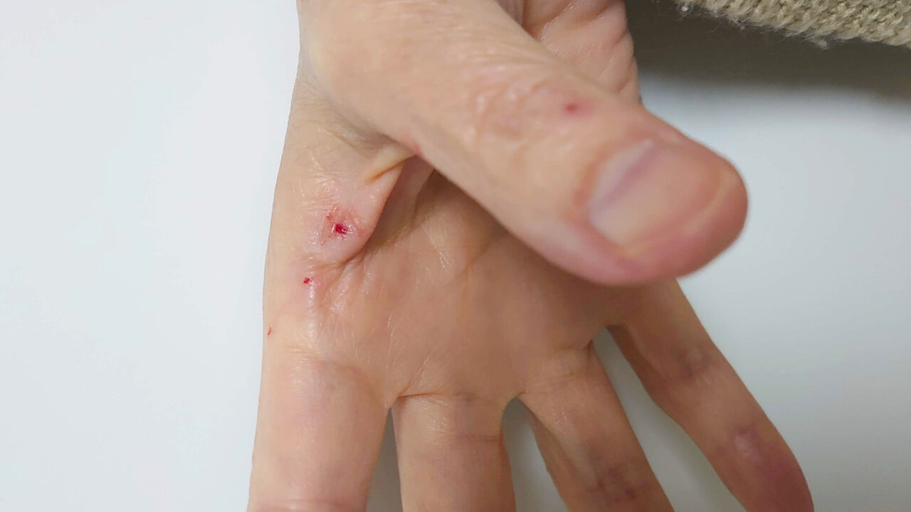 丁度手で脇から腕をキープしてたのでそこを噛まれました。