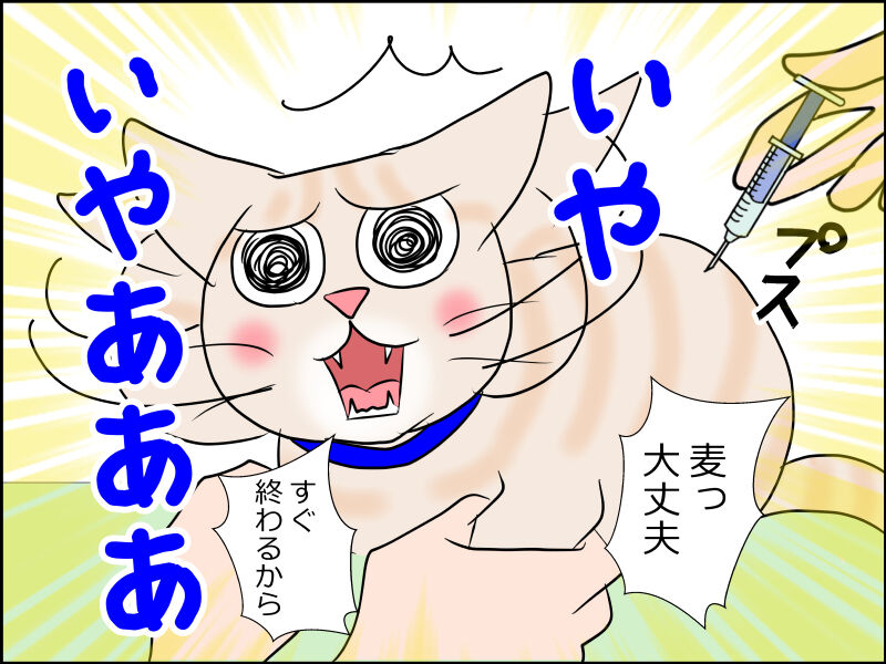 爪切りは先生キックして対抗するけど、注射はされても何も起きていないかのように無抵抗です。