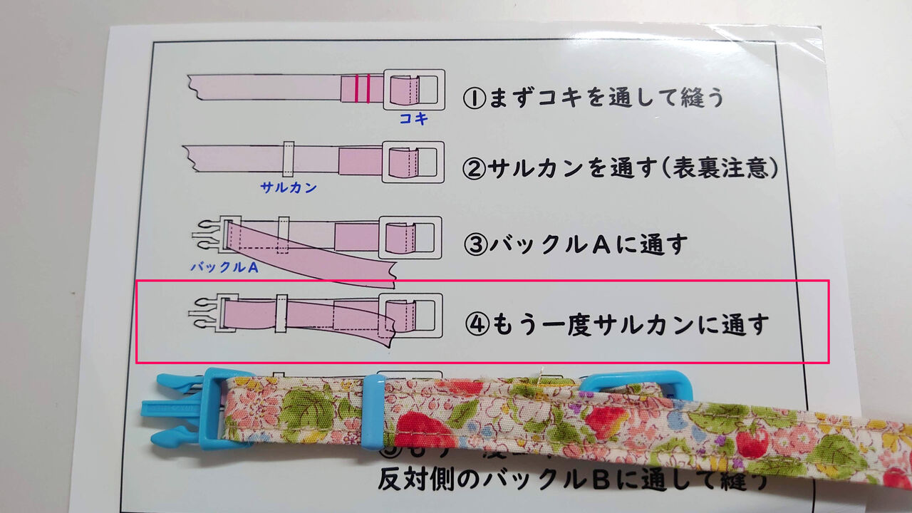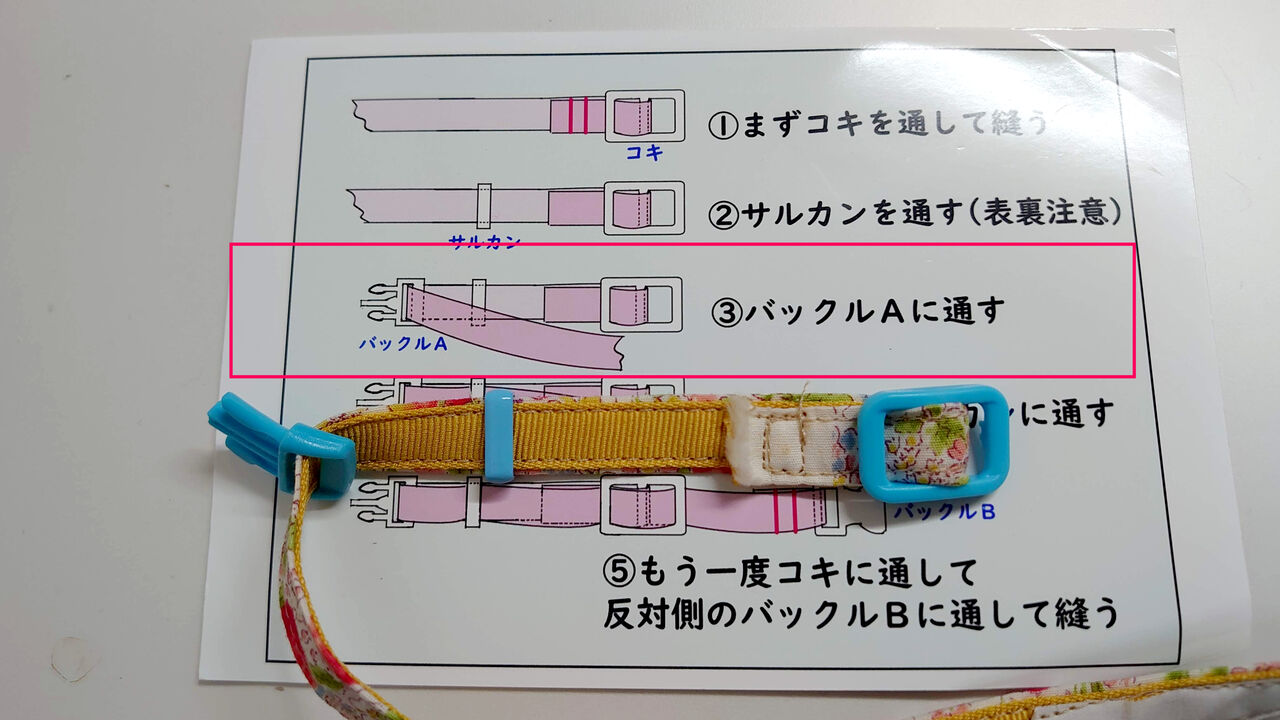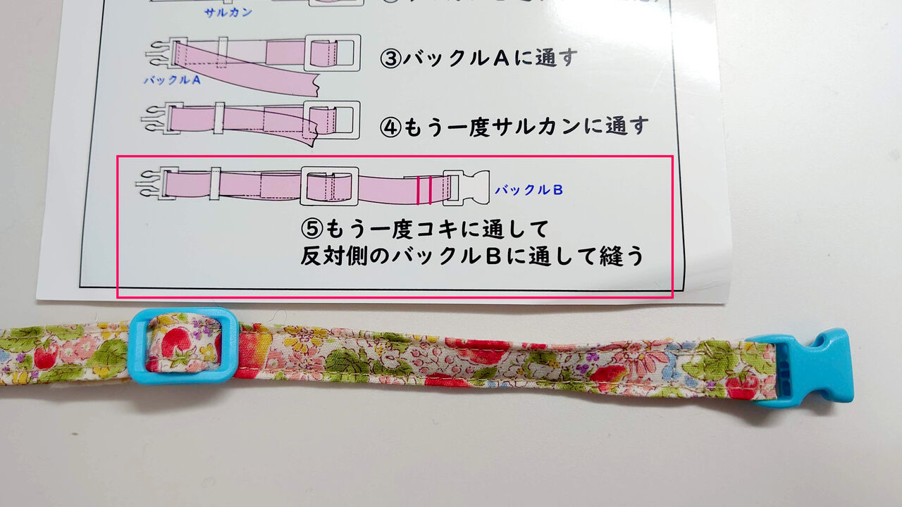 グログランテープと首輪本体を縫い合わせます