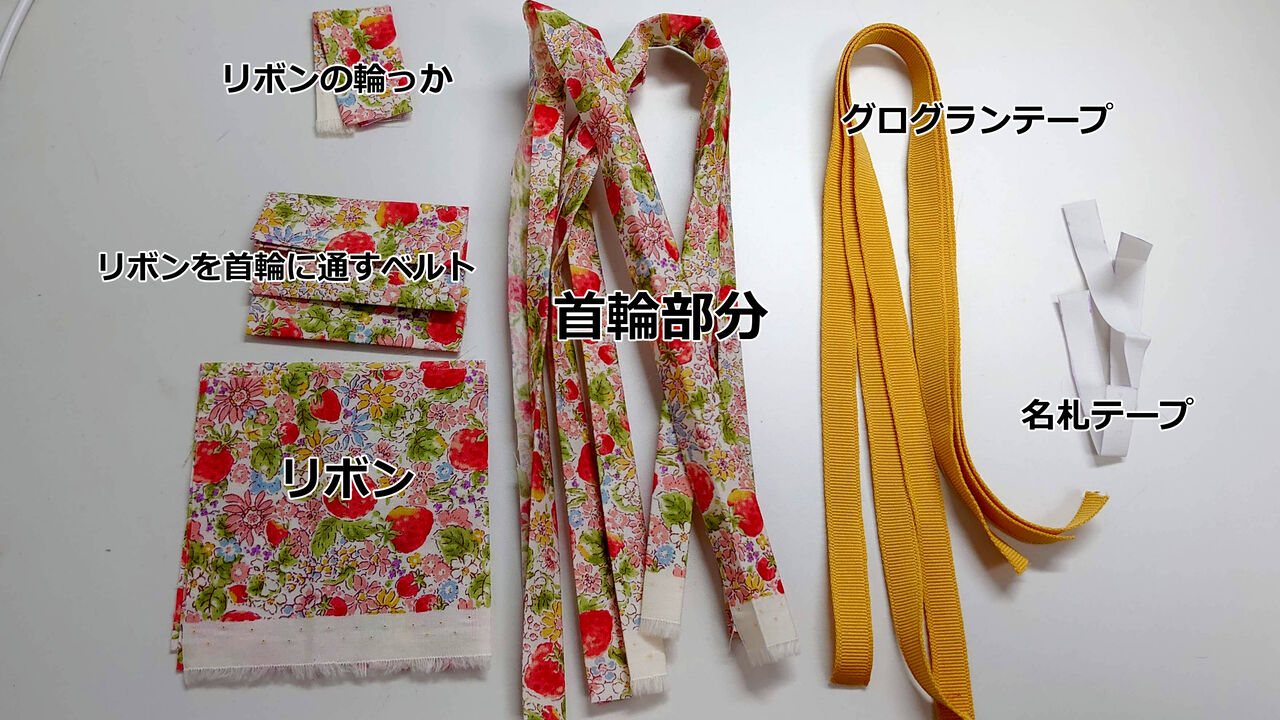 布のほかにはコットングログランテープ(幅9mm~長さ分×3)