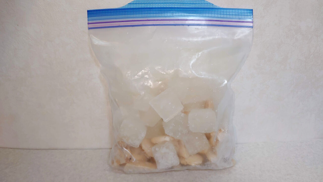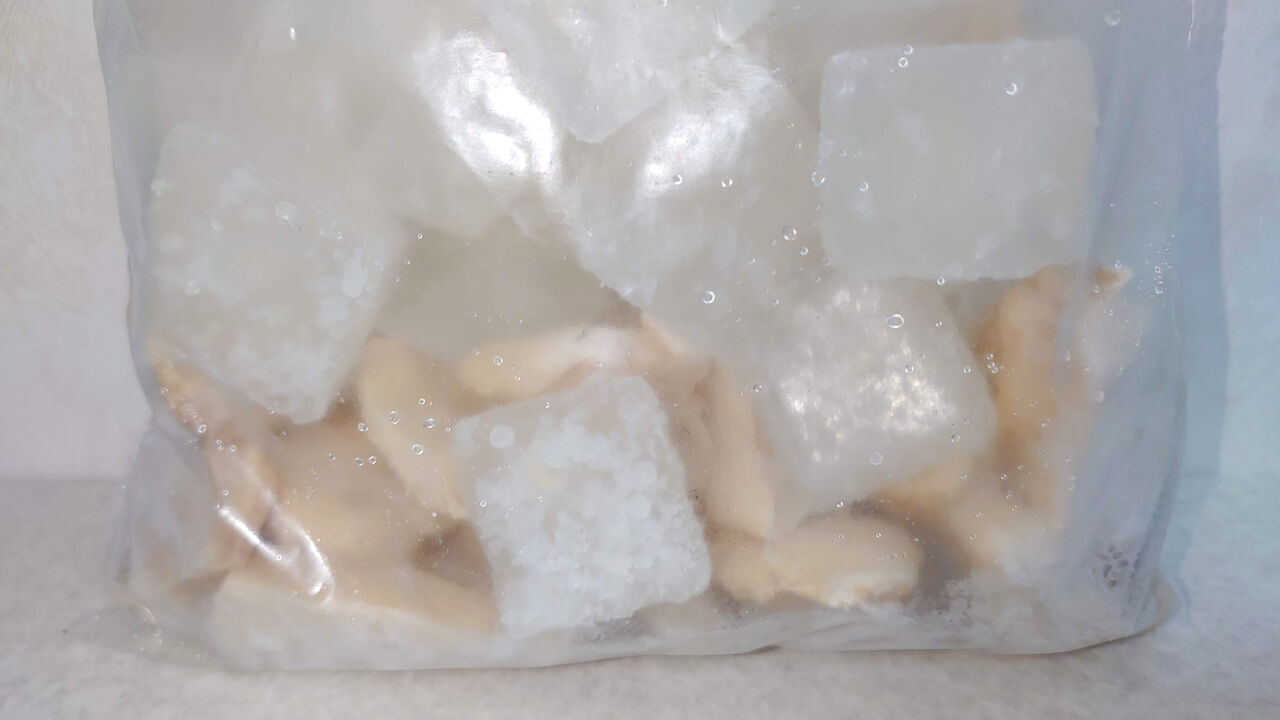 身だけ先取り出して、残ったゆで汁を2回に分けて冷凍しています。