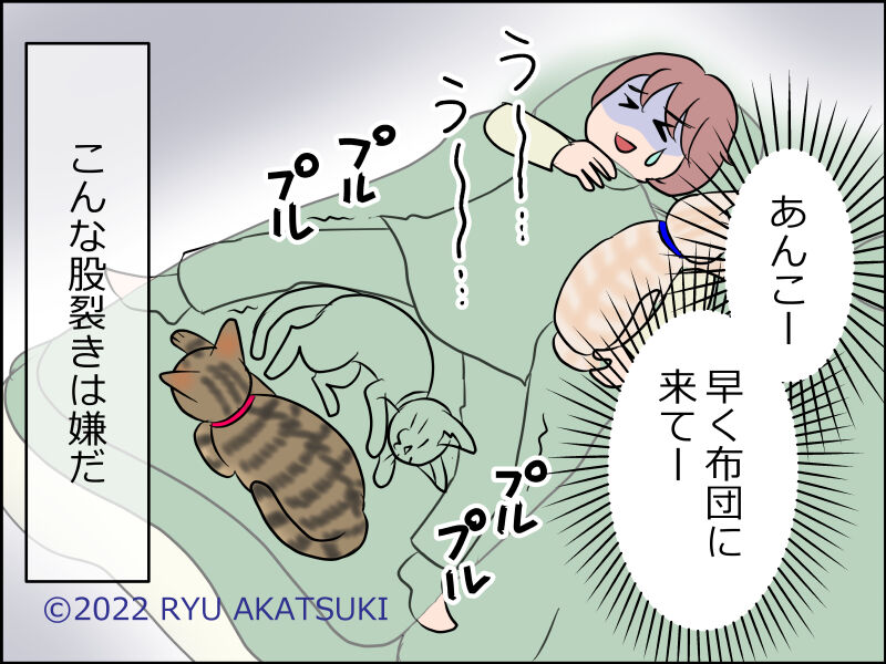 まるが布団入る時にあんこを起こしてしまった場合