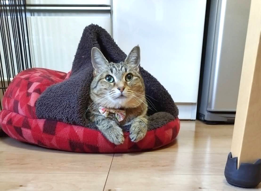 夜あんこは足元か衣装箱の上の猫ベッドで寝てます。