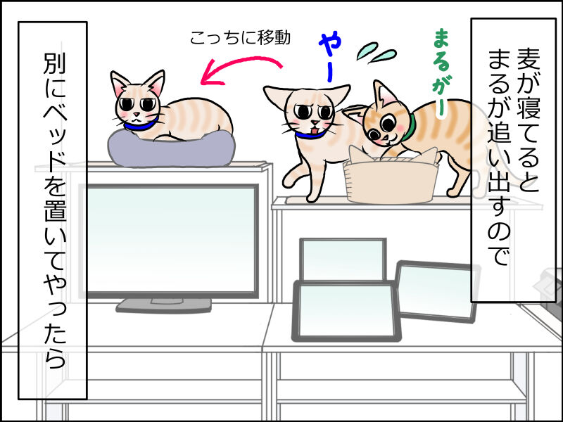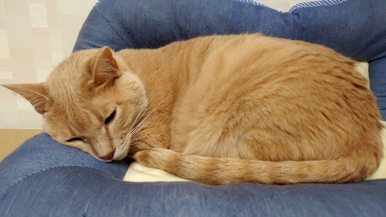 暖かくなって麦がまた机の上置きで寝るようになりました。