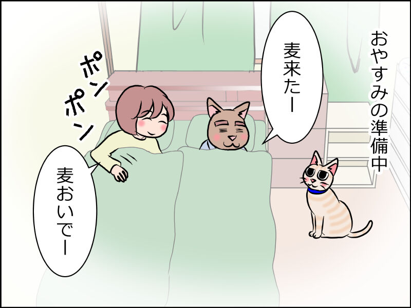 暖かくなりましたが麦はまだ腕枕に来ます。