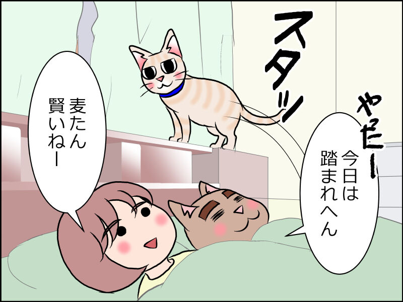 いつも父ちゃんを踏んで移動しますがたまに迂回します。