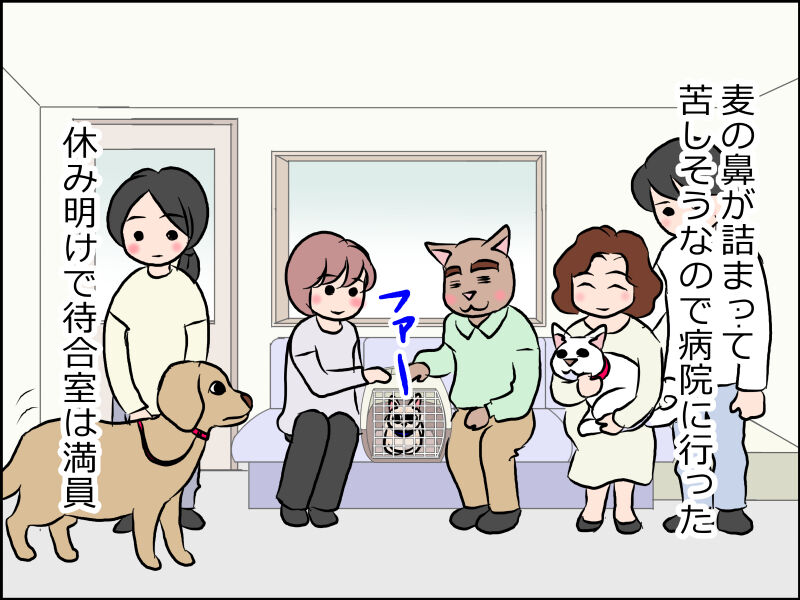 麦が鼻が詰まって苦しそうだったので病院に行きました。