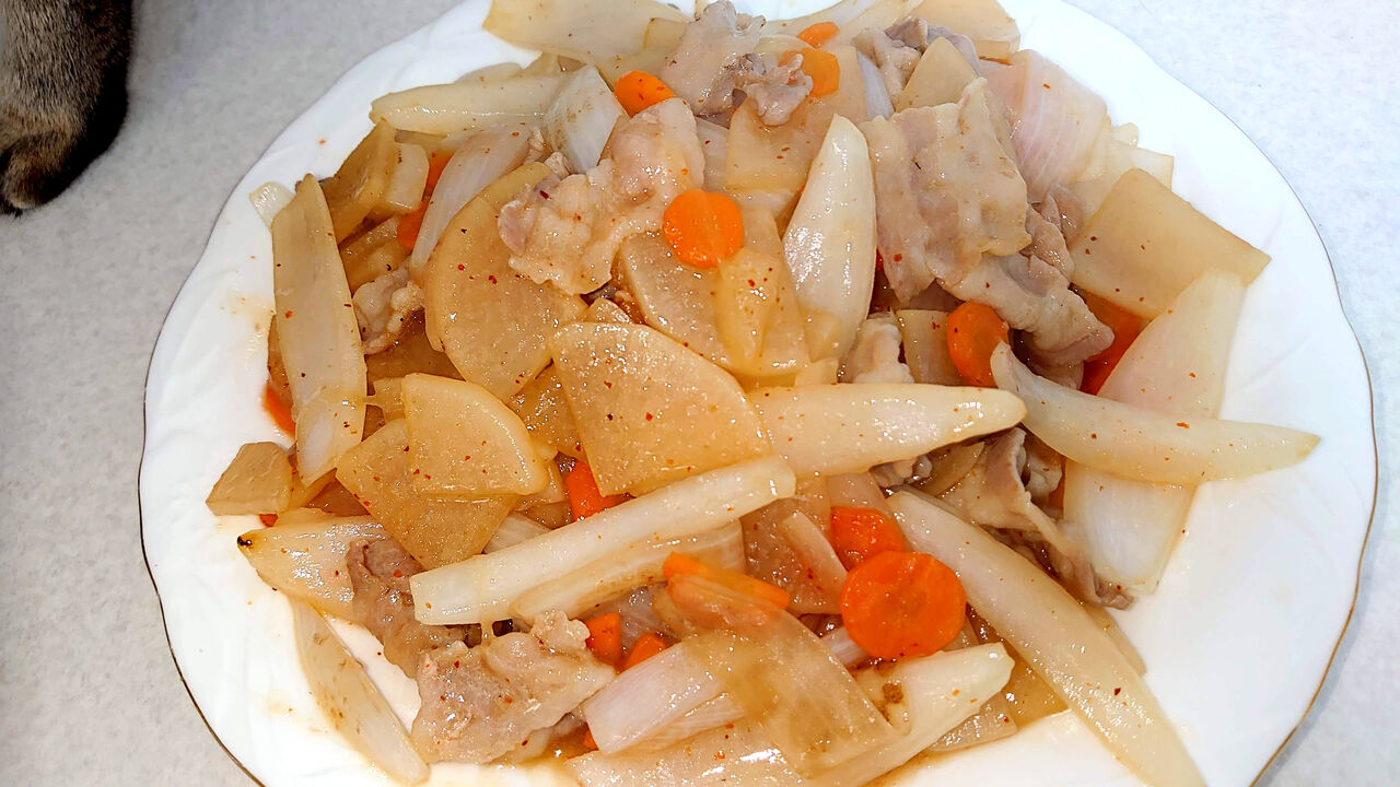 メニューは大体冷蔵庫にあるものを中心に決まるので炒め物とかが多いです。