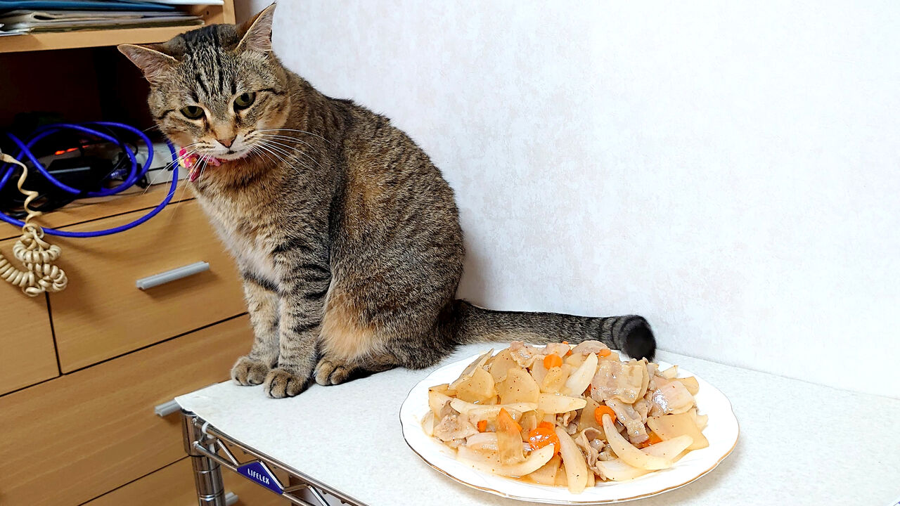 (うちの猫さんは夜、猫草をひとくち食べてお水を飲んでから布団に入ってきます)