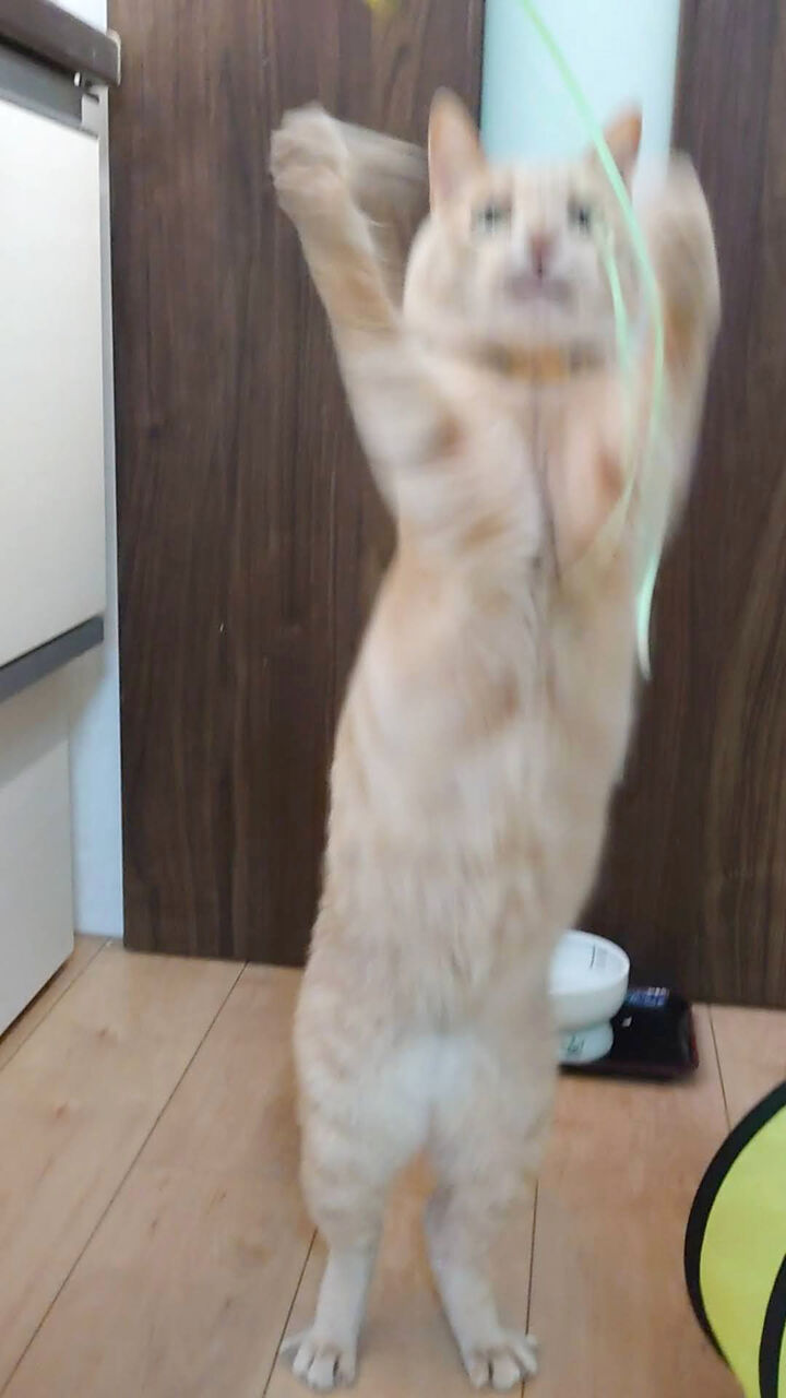両手両足開いて、体幹しっかりと躍動感ある写真ですね🐾