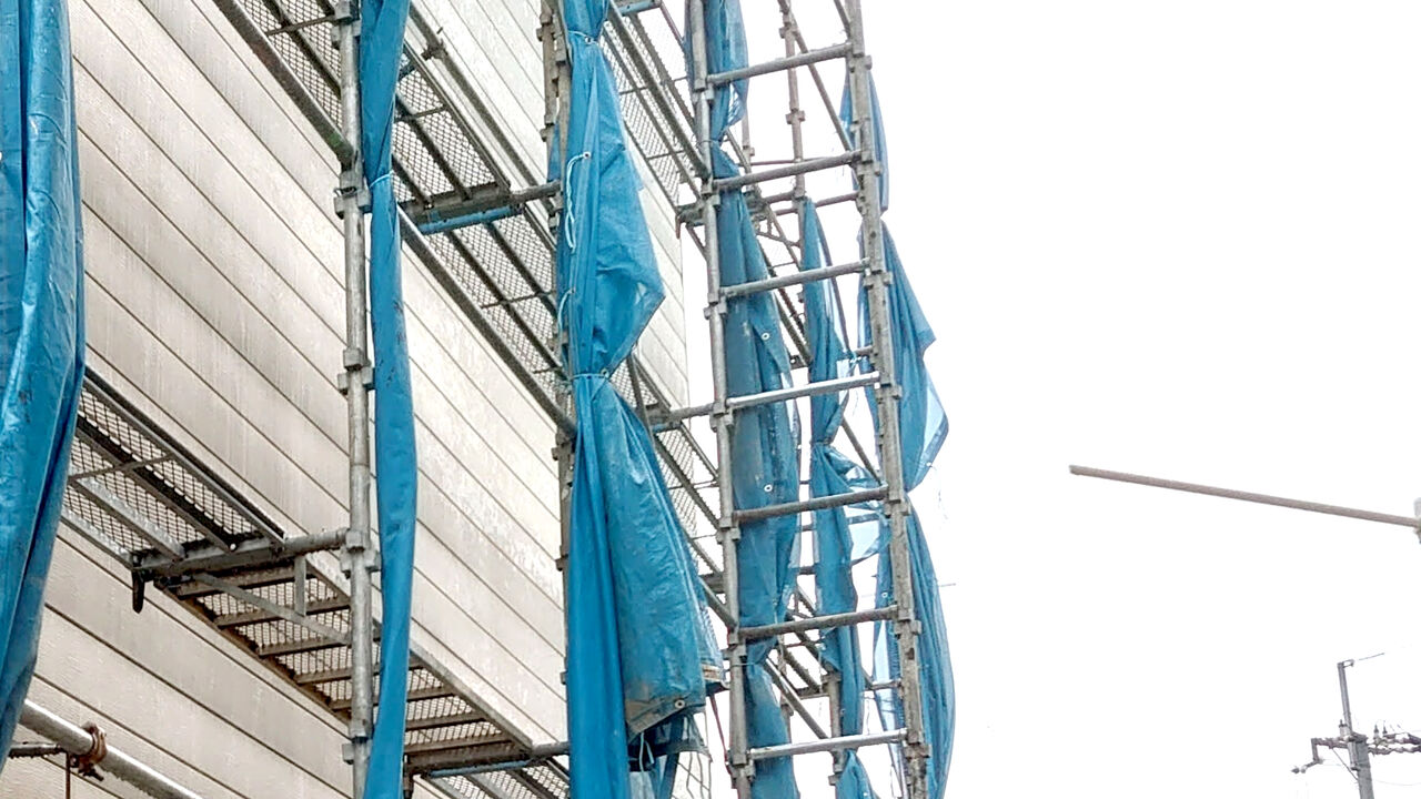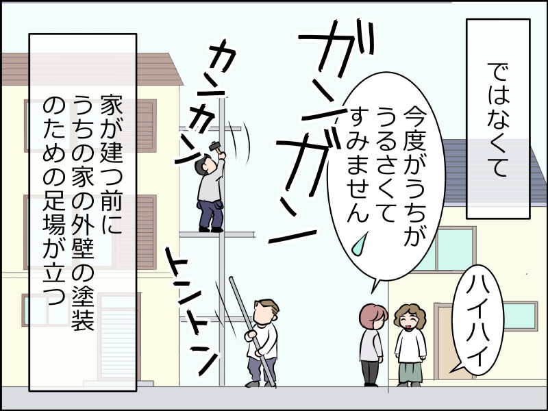 塗るのは静かだけど足場がトントンカンカン。