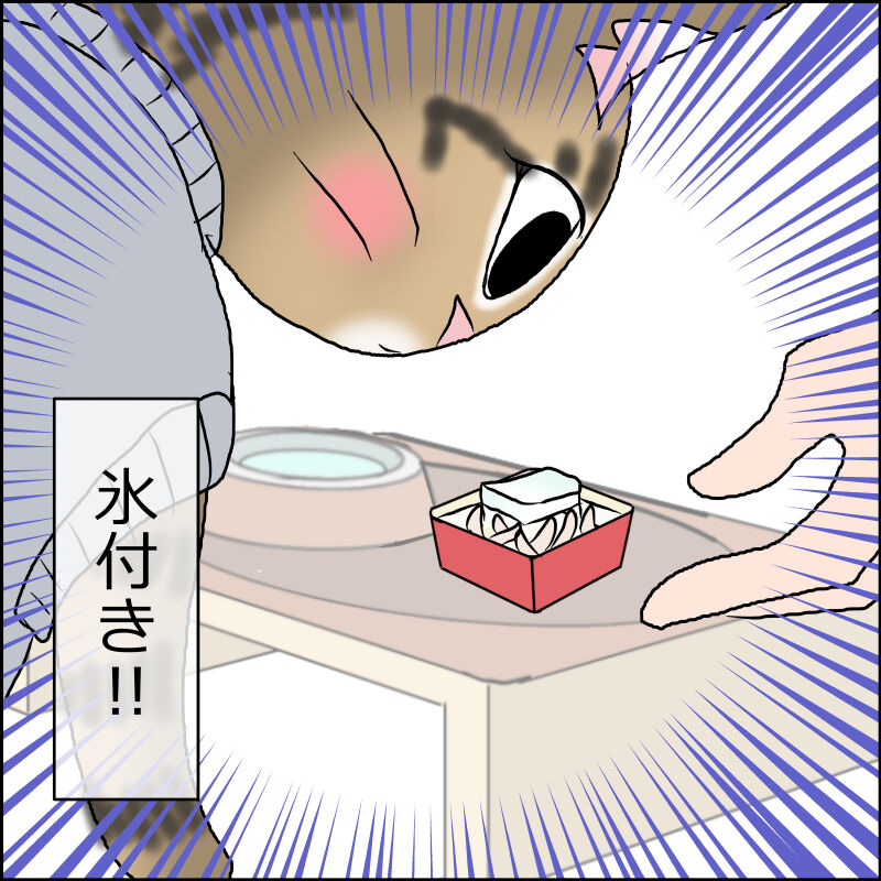 氷と言っても解凍したときに溶け残ったものを一緒にあげてます。