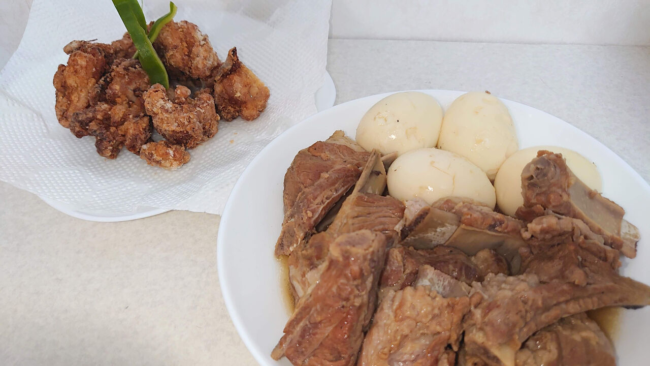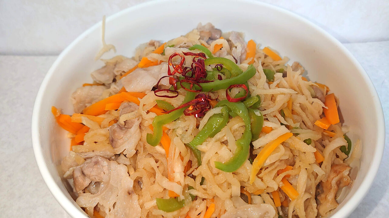 おまけは母ちゃんが作った豚バラと千切り炊いたん