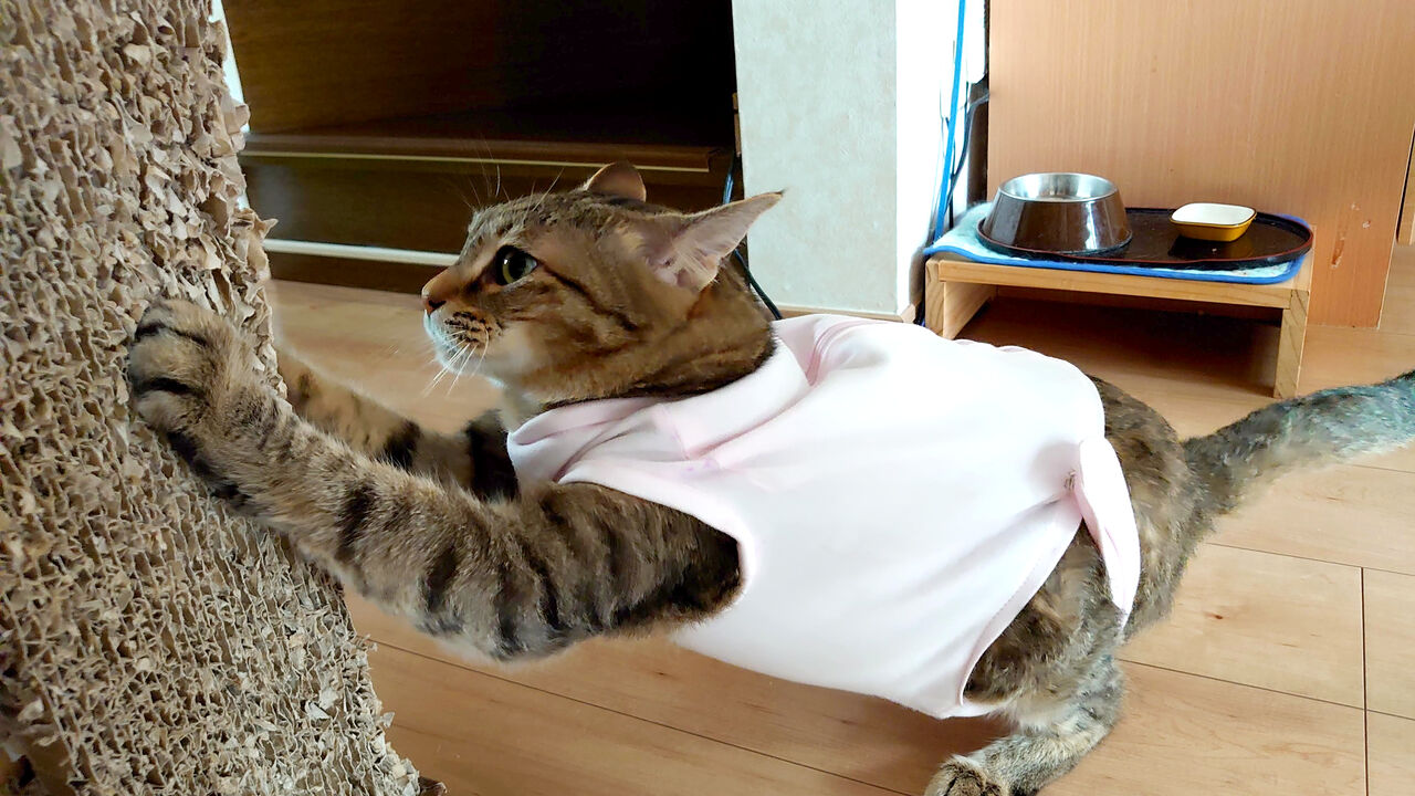 一度脱げた時にそのままにしてたらまた舐めようとしてたし。