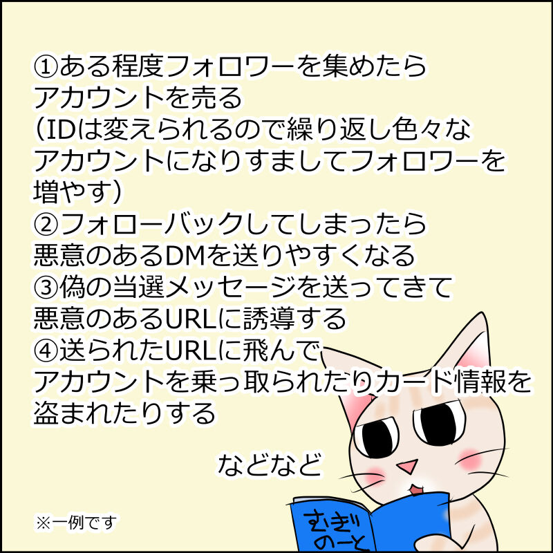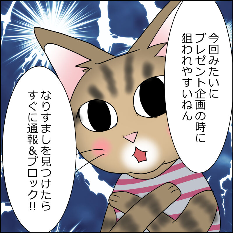 フォロワー数も大した事ないしプレゼント企画とかの応募もあんまり参加しないので私は無縁だとは思いますが、何となく気をつけなきゃ!と思いました。
