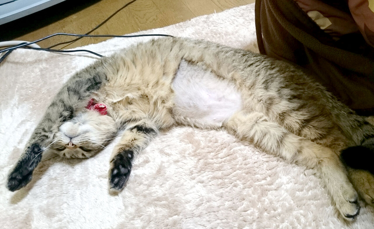お腹ががっつりハゲてるのは避妊手術の名残。