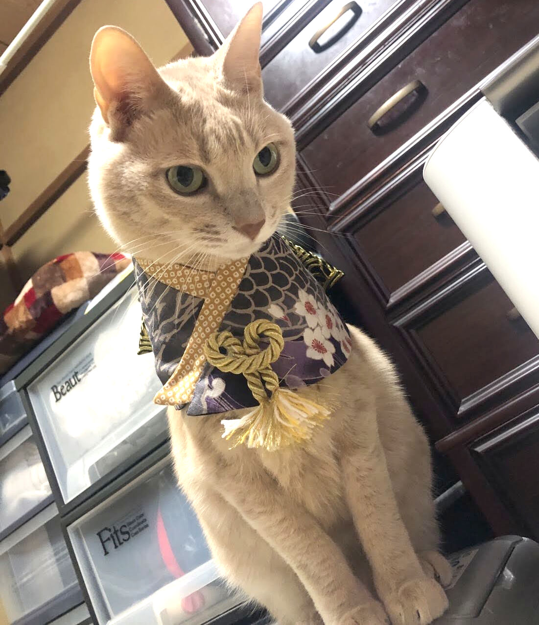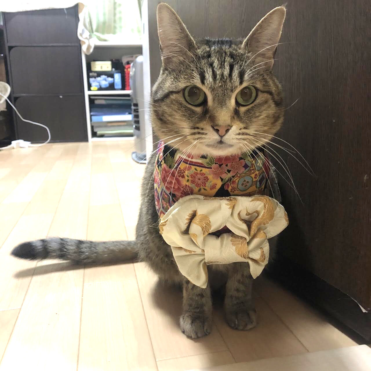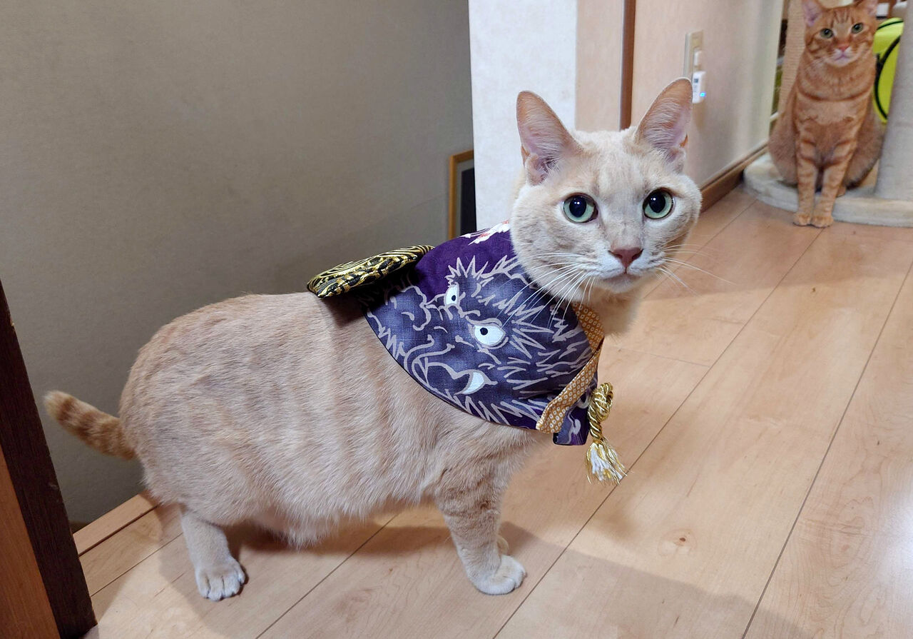 あんこちゃんが着てる和服も、被毛の色に合わせたらこういう色合いになるのか~!(゚ー゚)(。_。)ウンウン!帯は淡い黄色素敵!って、思いました(˶ᐢωᐢ˶)