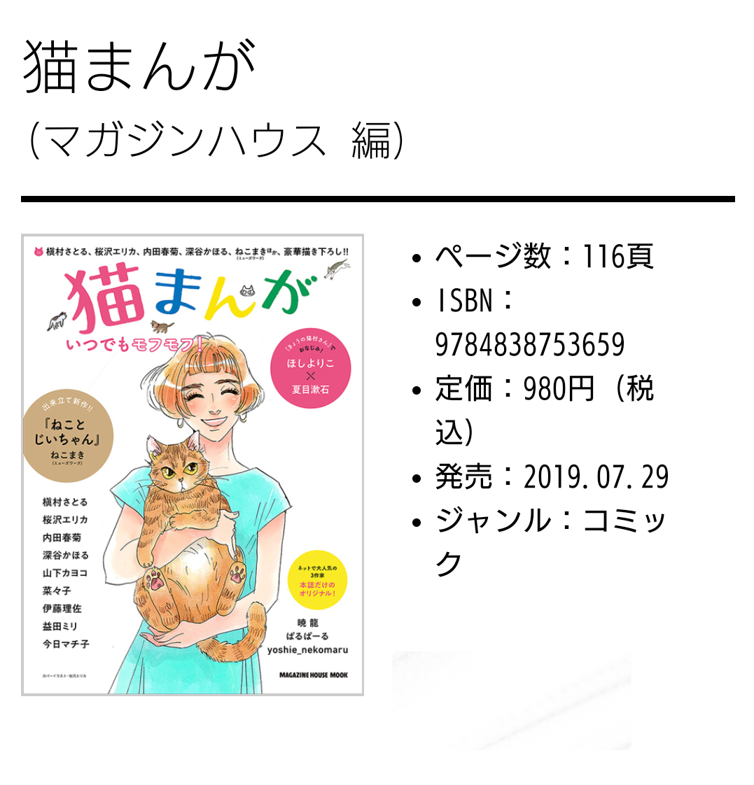 「猫まんが/いつでもモフモフ」発売のお知らせ 2019年07月28日 人物紹介はこちらから 最初から読むにはこちらから(14話~) →7月のカレンダーはこちら やっと解禁になりました! お知らせです! 明日2019年7月29日(月)にマガジンハウスより 「猫まんが/いつでもモフモフ」が発売されます!!! なんと! 「あんこと麦と」も錚々 ... 続きを読む