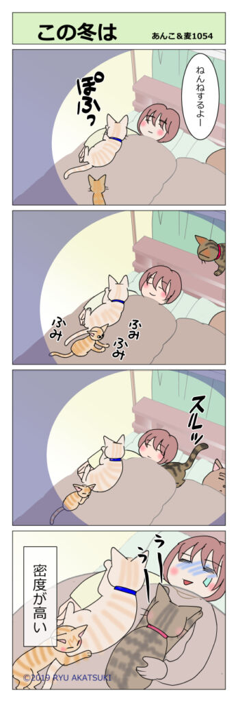 あんこ&麦1058 よく聞かれます(猫まんが) 2020年01月20日 猫たちは何故父ちゃんのほうで寝ないのでしょう。その答えは… 巻き込まれ注意 何度か身をもって学習したのでしょう。そして母ちゃんの布団の上に集合することになります。 朝はこうなってるけど… 母ちゃんはたぶんよい子たちが寝てたら動かない…(と思 ... 続きを読む