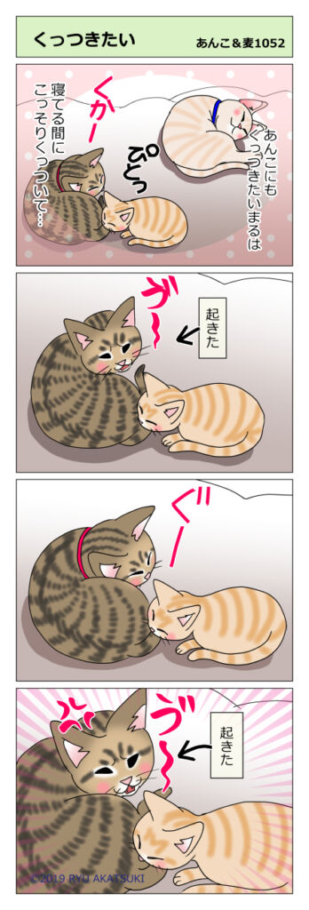 あんこ&麦1052 くっつきたい(猫まんが) 2020年01月11日 あんこにもくっつきたいまる。くっつくと怒られるので寝てる間にこっそりくっついてました。 気になって寝られない! 始めは3匹離れて寝てたのですが…。 くっついたら怒られるのに…。まるにとっては遊んでくれる先輩みたいな感じなのでしょうか(*´ω ... 続きを読む