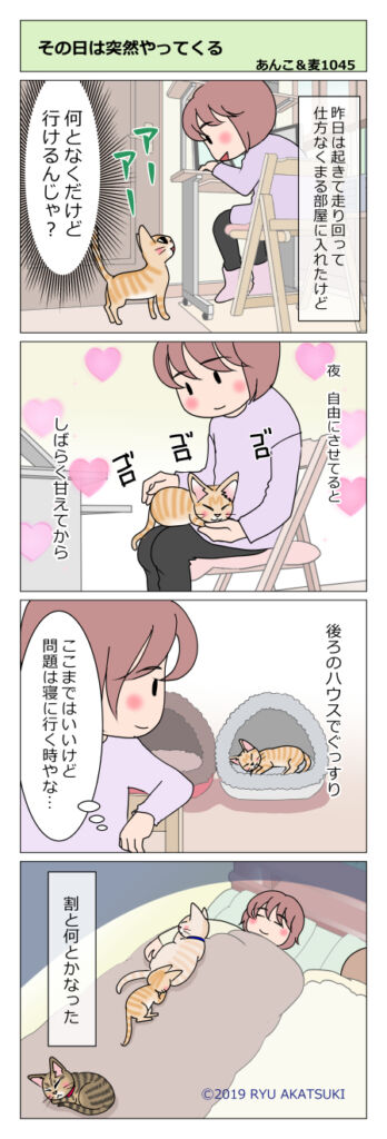 あんこ&麦1045 その日は突然やって来る(猫まんが) 2020年01月02日 この前は惜しかったけど…あれ?もしかしたら大丈夫なんじゃないと思ったのです やったー! どうしても駄目ならまあいいやと思いつつそのままにしてみたら…行けちゃったじゃないですかー! 夜は写真撮れないので朝の景色を… いーでしょー えへへ ... 続きを読む