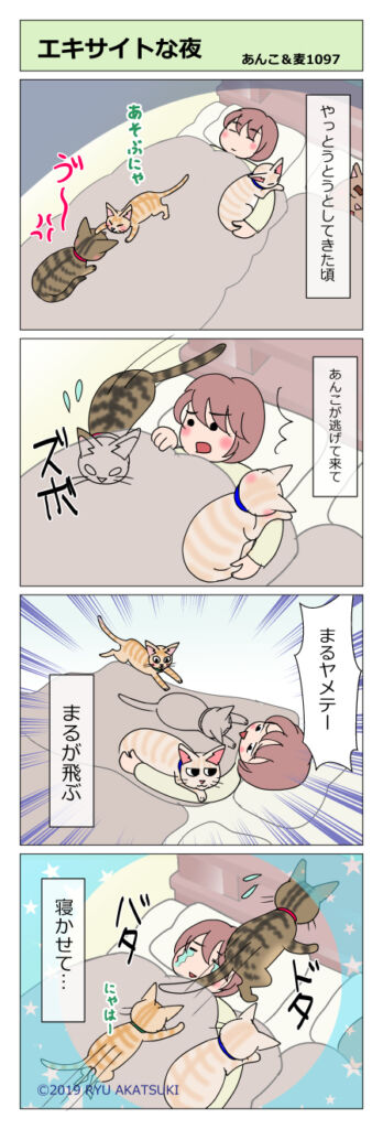 あんこ&麦1104 動かない男が動く時 2020年03月25日 動かずのムギー。人は彼をそう呼ぶ。 サンドイッチの具の気分 麦は怒らないけど嫌だったようで…まるもいつの間にか3.2キロ。細いようでそれなりの重さにはなってます。 まるはむじつにゃ いやなかなかのワルだと思われます 正しい腕枕の図 両腕がふさ ... 続きを読む