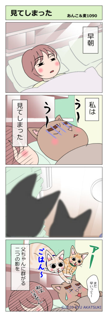 あんこ&麦1090 見てしまった 2020年03月06日 まだ早い朝。ふと気づいて見ると… たかられてる~ 古い映画ですがヒッチコックの鳥と言う映画がありまして…一瞬そういうイメージでした スイッチの入った奴らの攻撃はやみません今までは麦の単独攻撃でしたが連合軍には勝てません父ちゃんは根負けしてご飯あげ ... 続きを読む