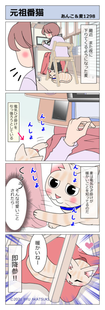 あんこ&麦1301 番猫は増殖する 2021年01月22日 前のお話のちょっと続きです。母ちゃんを探して鳴く麦。上がってきて感動の再会となりましたが… 全員丁寧に退出して頂きました(追い出したとも言う) ばんねこはおまかせください まるも出来るにゃー! 普段はついて来たりしないのですが… テン ... 続きを読む