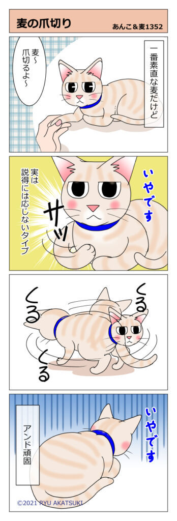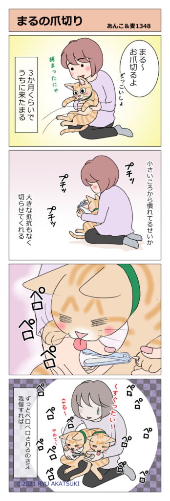 あんこ&麦1348 まるの爪切り 2021年04月03日 あんこ編はこちら あんこに続いてまるの場合こうなります 楽勝っちゃあ楽勝 猫のたしなみにゃ まるは手も足も切ります足の爪は巻き爪になりやすいので分厚くなってないかチェック 小さい時からやってると「こういうもの」的に慣れてくれてる気がします ... 続きを読む