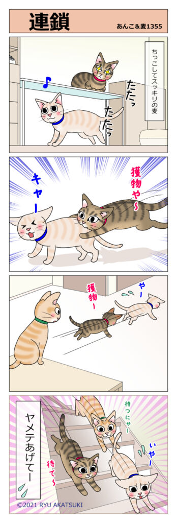 あんこ&麦1355 連鎖 2021年04月13日 https://ankomugi.com/archives/post-14858.html 狙われています ひどいわー(´;ω;`)ウゥゥ ちっこの後は身軽で嬉しいのでしょうか。軽くスキップするような感じ(に見えます)そこをロックオンされます。 あんこちゃんひどいです むぎがかわいいから ... 続きを読む