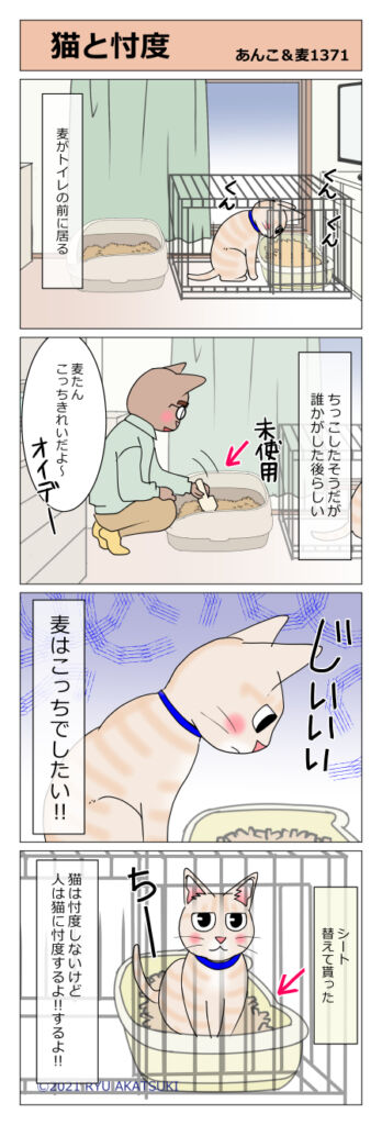 あんこ&麦1371 猫と忖度 2021年05月07日 忖度とは他人の心を推し量ること猫は人間に忖度しませんが… 猫のお役に立てて嬉しいにんげん! リビングにトイレは2つ(3Fにも2つ)気が付いたらすぐにシートを交換するのですが、たまに見落としてることもあります。どちらのトイレも使うけど、あんこも ... 続きを読む