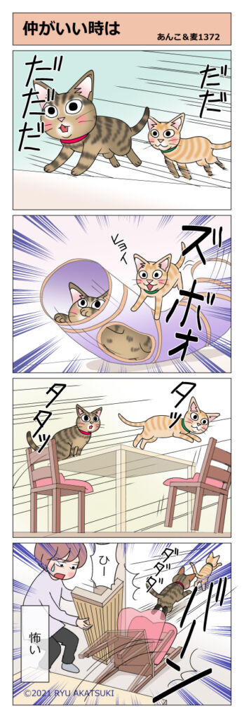あんこ&麦1372 仲がいい時は 2021年05月08日 静かに見つめ合う時もあれば仲良く運動会する時もあります トンネルは飛んでくるわイスは倒れるは爪とぎはこけるわ… 仲良しにゃよ あんこ疲れるわー 追いかけたり追いかけられたり楽しそうで何より たまに夜中に走ってるけどね…LINEで更新通知が ... 続きを読む