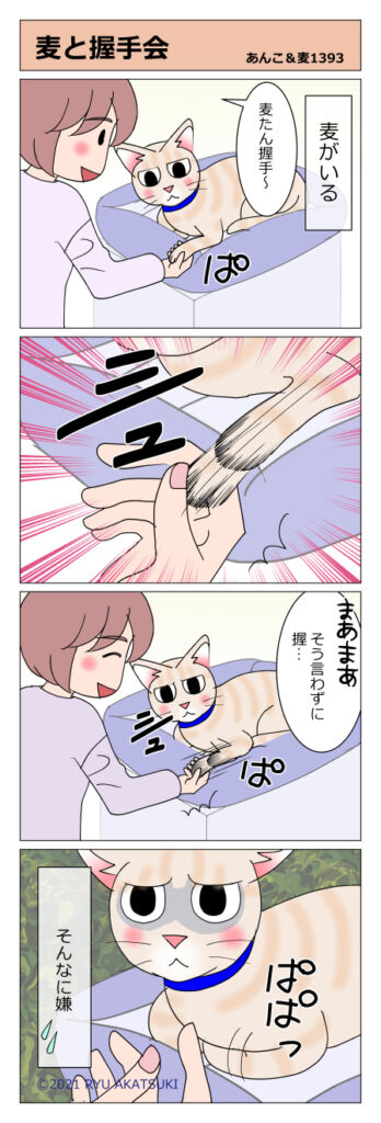 あんこ&麦1390 それぞれのトイレ事情 2021年06月04日 猫も人間もトイレはだいじ。 誰も教えてないのにー! はじめてうちに来た時、ありあわせのトレーにトイレチップを入れたらちゃんとしてました。習性と言ってしまえばそれまでですが、猫は本当にすごい。あんこや麦の真似をしたわけでもないのにねー。(特に ... 続きを読む