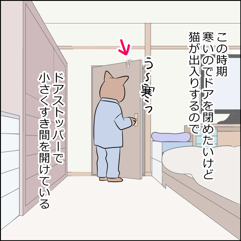 猫は自由に出入りさせてあげたいのでドアストッパーで隙間を開けています。
