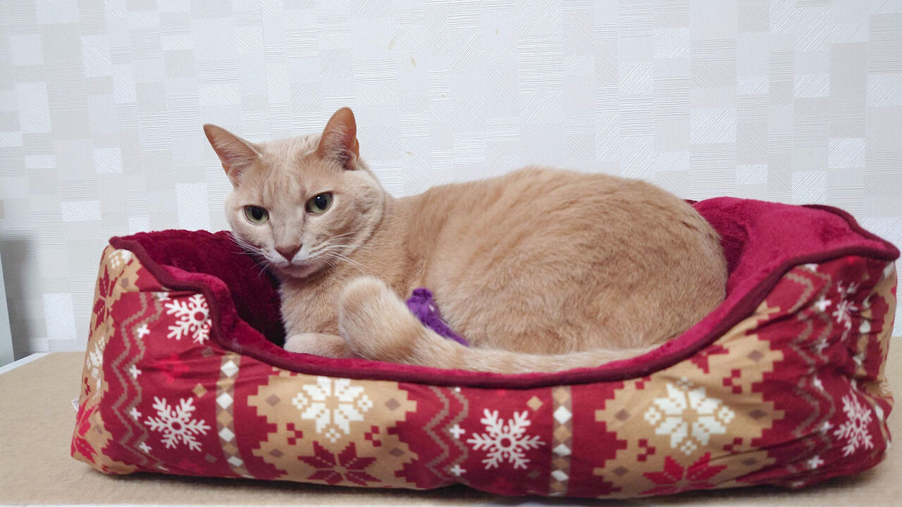 もう1匹は昨年11月に保護したばかりで、布団には入ったくれません。いつか川の字で寝たいなぁ。