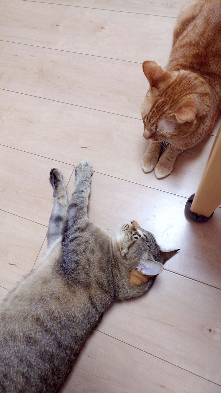遊んでても最初は遊ばずあんこをじっと見てる。