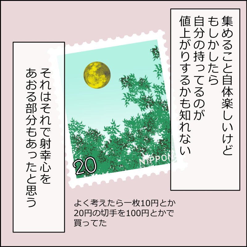 一部高いものもあったけど自分たちが集めてた頃はもう切手の発行部数が増えてて、新しい切手はほぼ値上がりしなかったです。