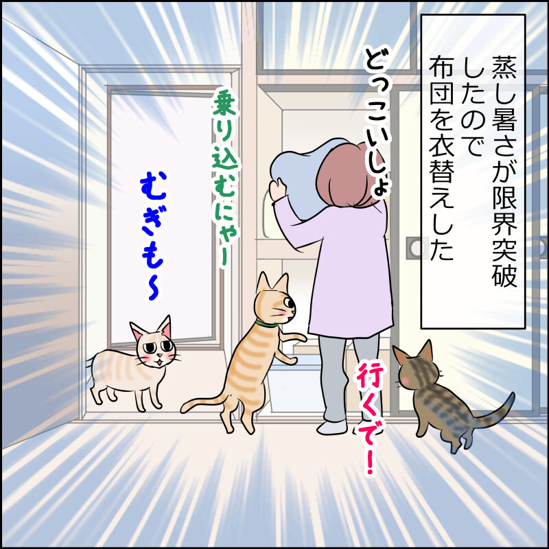 母ちゃんは寒がりなのでギリギリまで冬布団だったのですがついに限界突破。