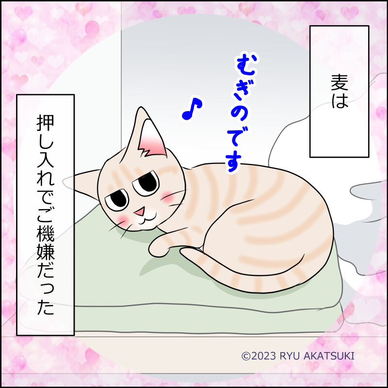 大変お気に入りの所申し訳ございませんが押し入れを閉めたいので…