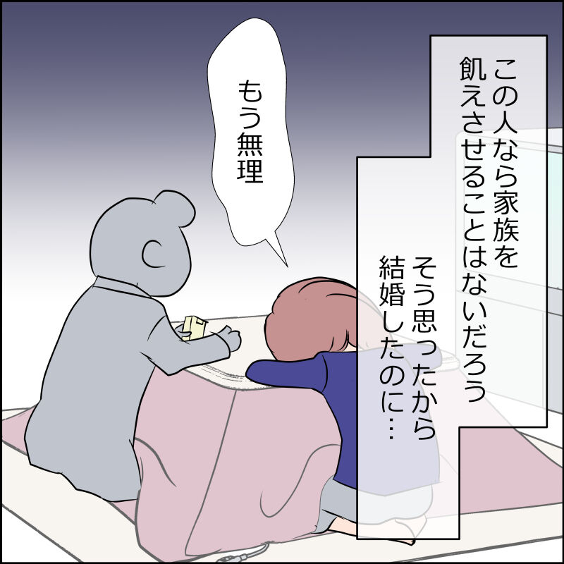 独りものや余裕あるなら夢見る気ままな起業でもやればよいがこのお人は”俺も頑張てる!”ていいわけして結果出せなければ意味ないしワガママな道楽、家族を食わして行く為にプライド捨てて家族を守ろうとか思わなかったのか…