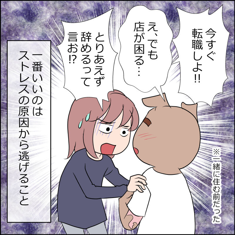 ストレスの怖さは知ってるのでプレ父ちゃんにはすぐ転職するよう言いました。