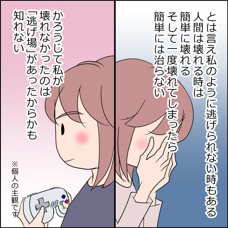 逃げるにせよ解決するにせよ、正常な判断をするためにストレスを抜くことが出来るものや、ストレッサーとは別の価値観を持つものに触れている時間は大切だと思います。