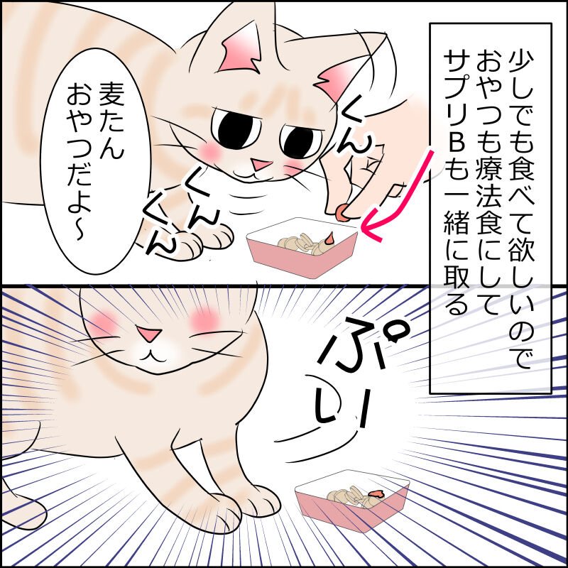 治療開始のときは体重4.28kgだったのでこれ以上痩せないように。